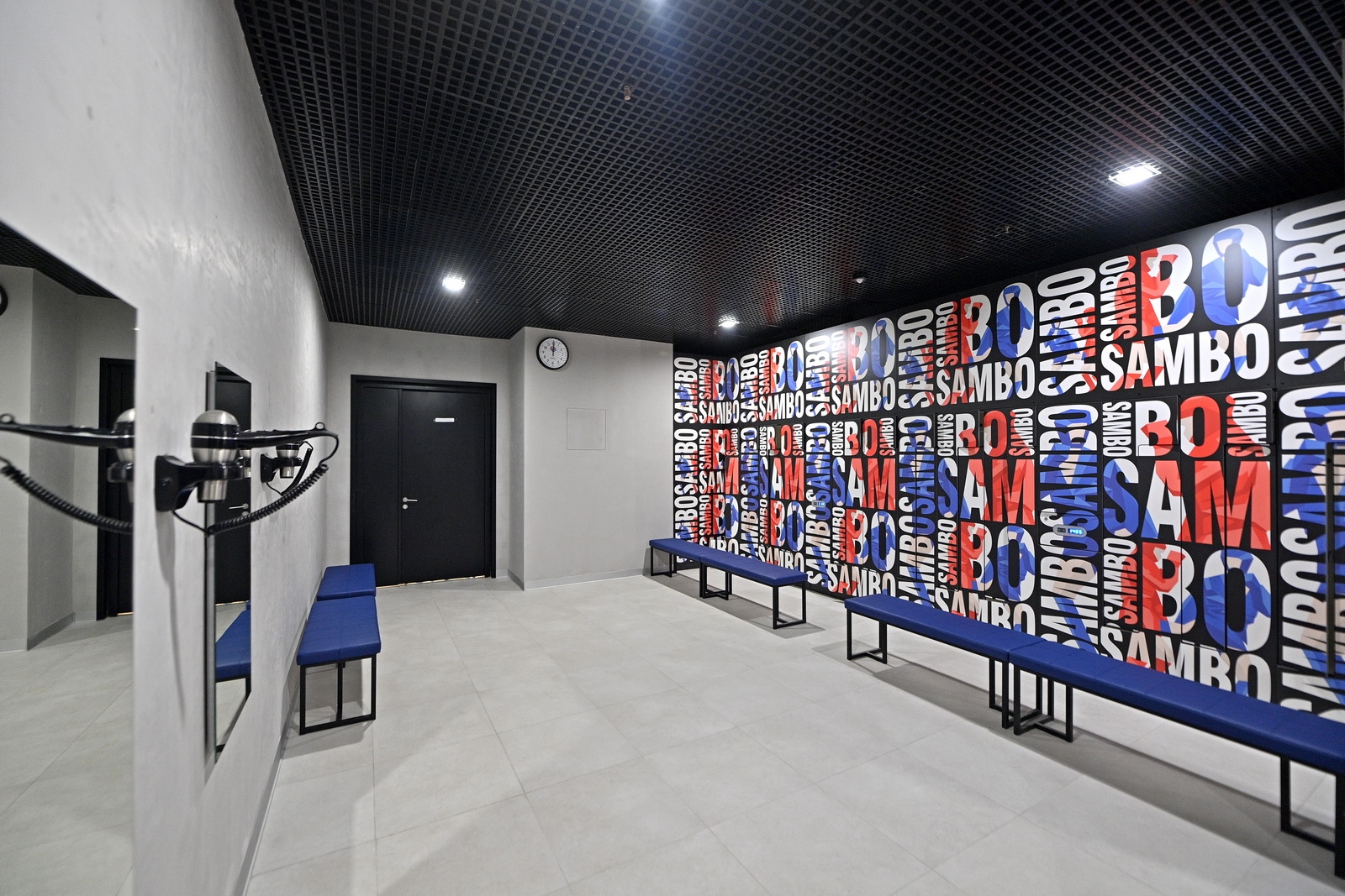 В центре самбо предусмотрен зал на три ковра с трибунами на 1600 зрителей и VIP-ложей на 40 человек, а также тренировочный зал на три борцовских ковра. Техническое оснащение позволит здесь также проводить международные соревнования.