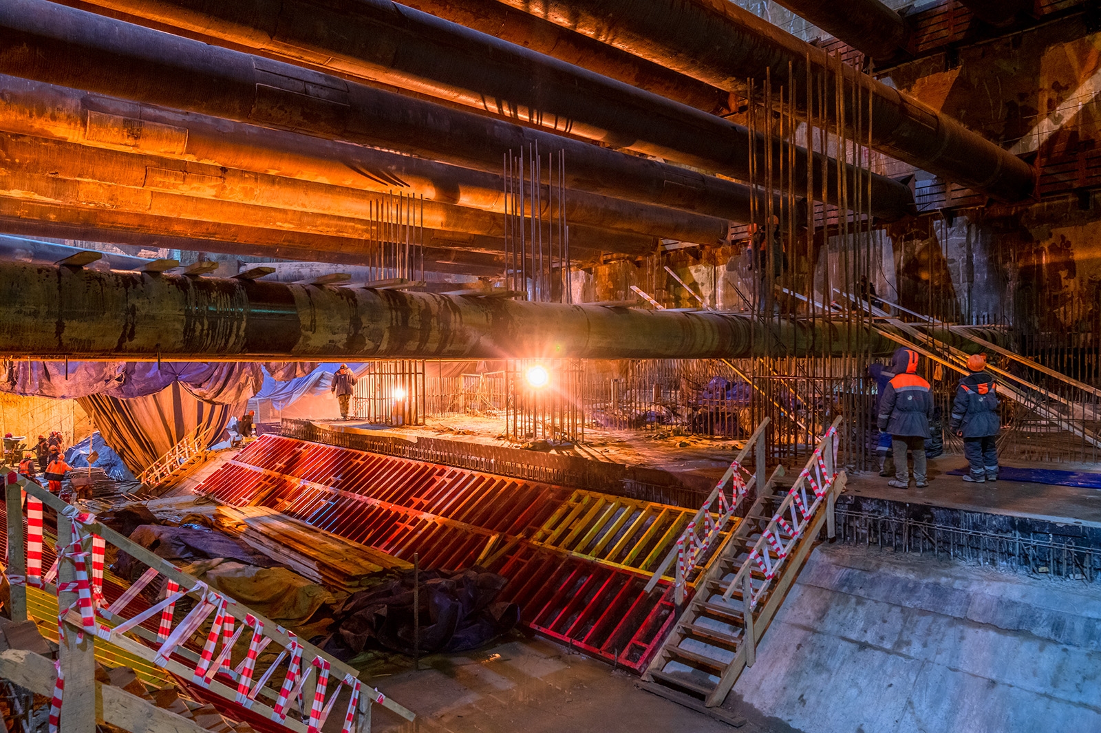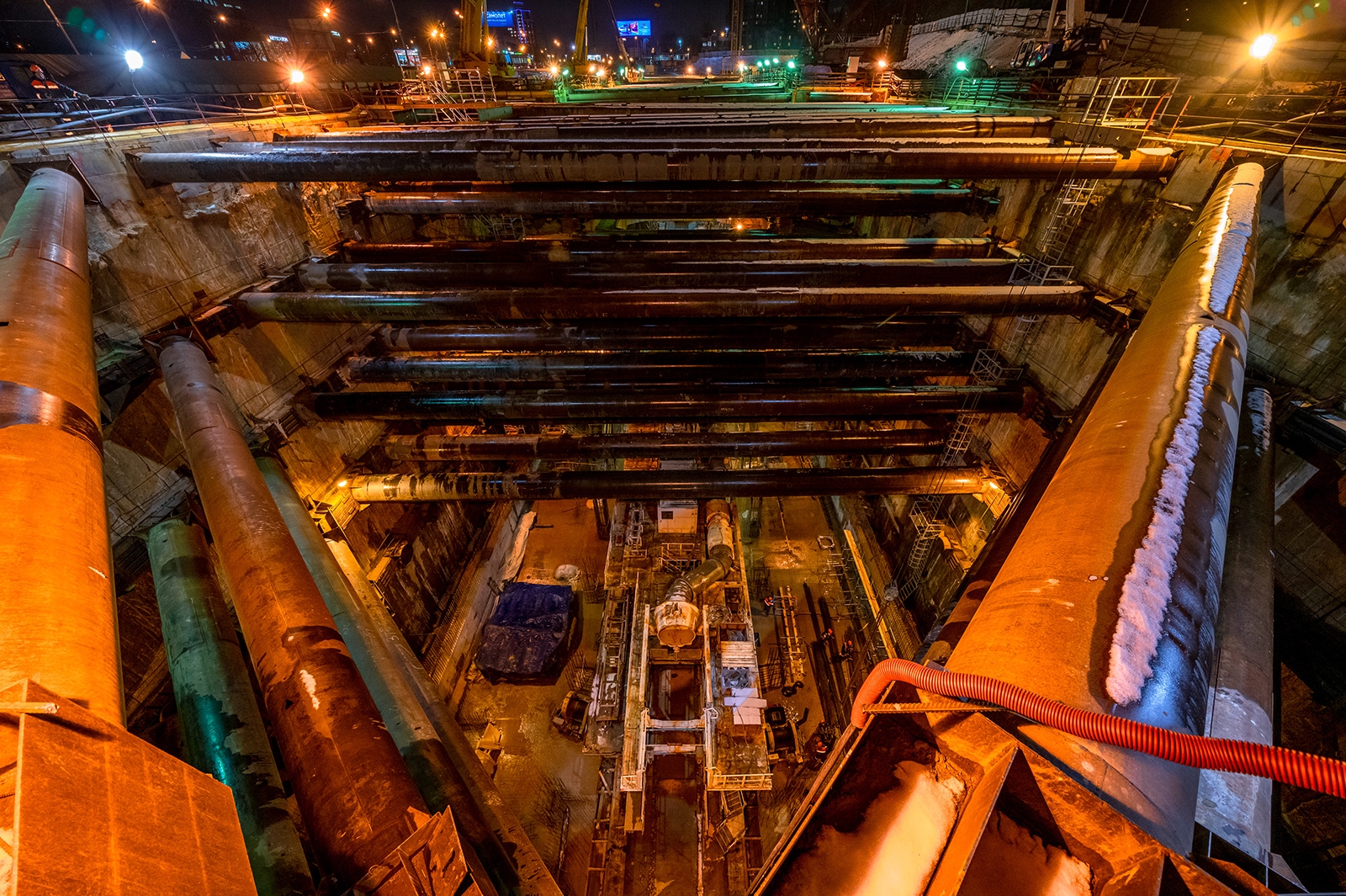 Все крупногабаритные элементы опущены в котлован, откуда в феврале «Надежда» начнет совсем неженский путь длиной три километра до переходной камеры за станцией «Давыдково».