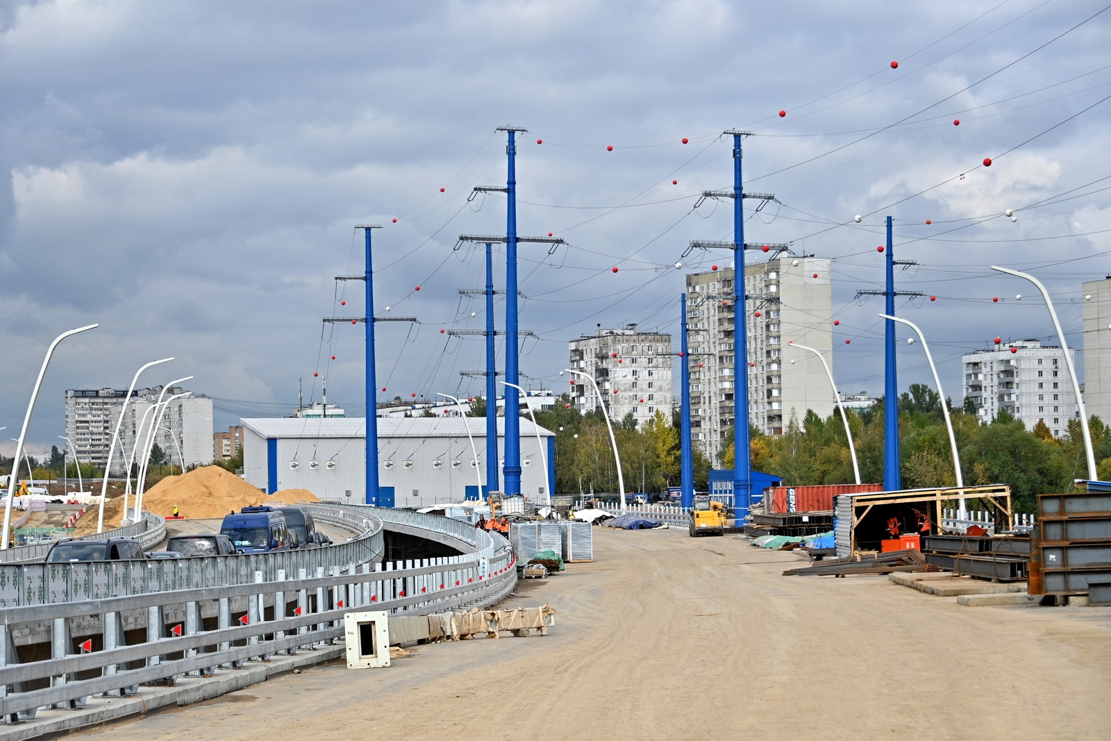 Всего здесь построят 96 км дорог, в том числе 56 транспортных сооружений длиной 22 км и 12 пешеходных переходов.
