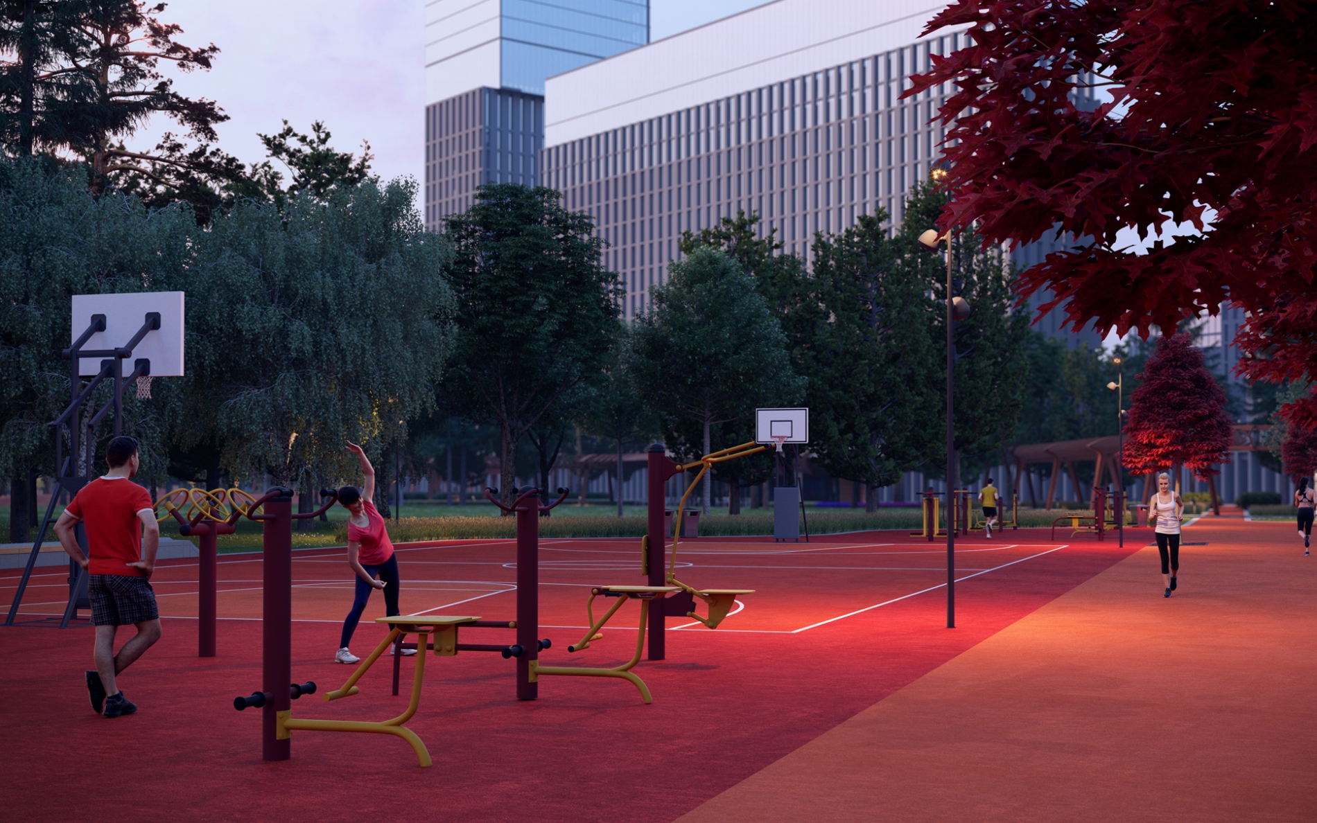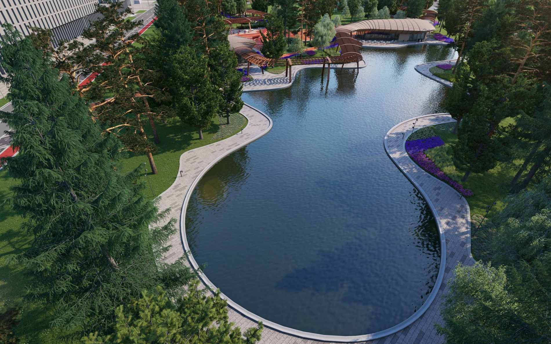 В ближайшее время откроется ландшафтный парк площадью около 10 гектаров с прудом, баскетбольной площадкой, теннисными кортами и детской игровой зоной.