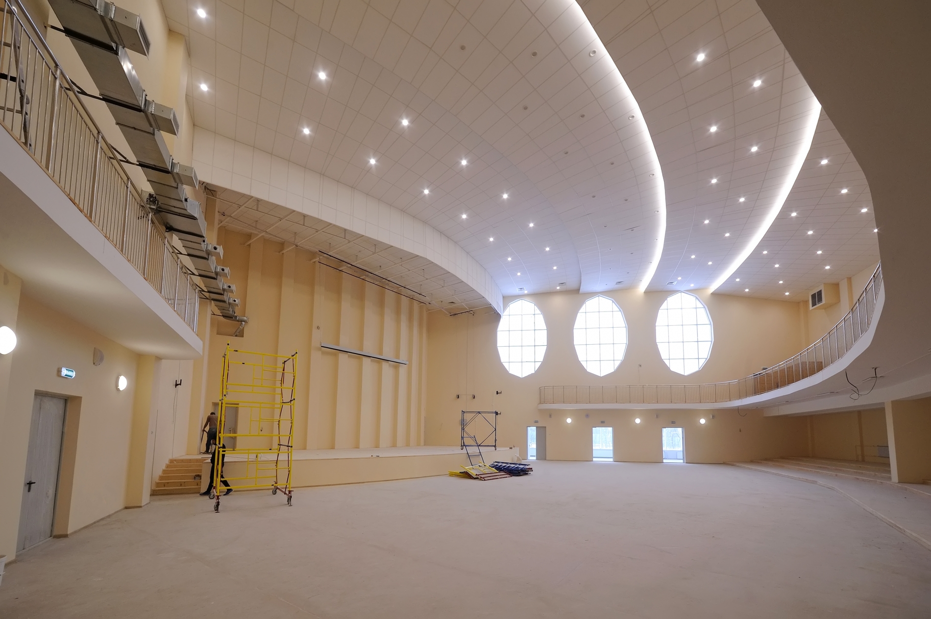 В школе площадью 31,7 тыс. кв. м – современные классы, актовый зал на 980 зрительских мест и многофункциональный спортивный блок – два спортивных зала и плавательный бассейн.