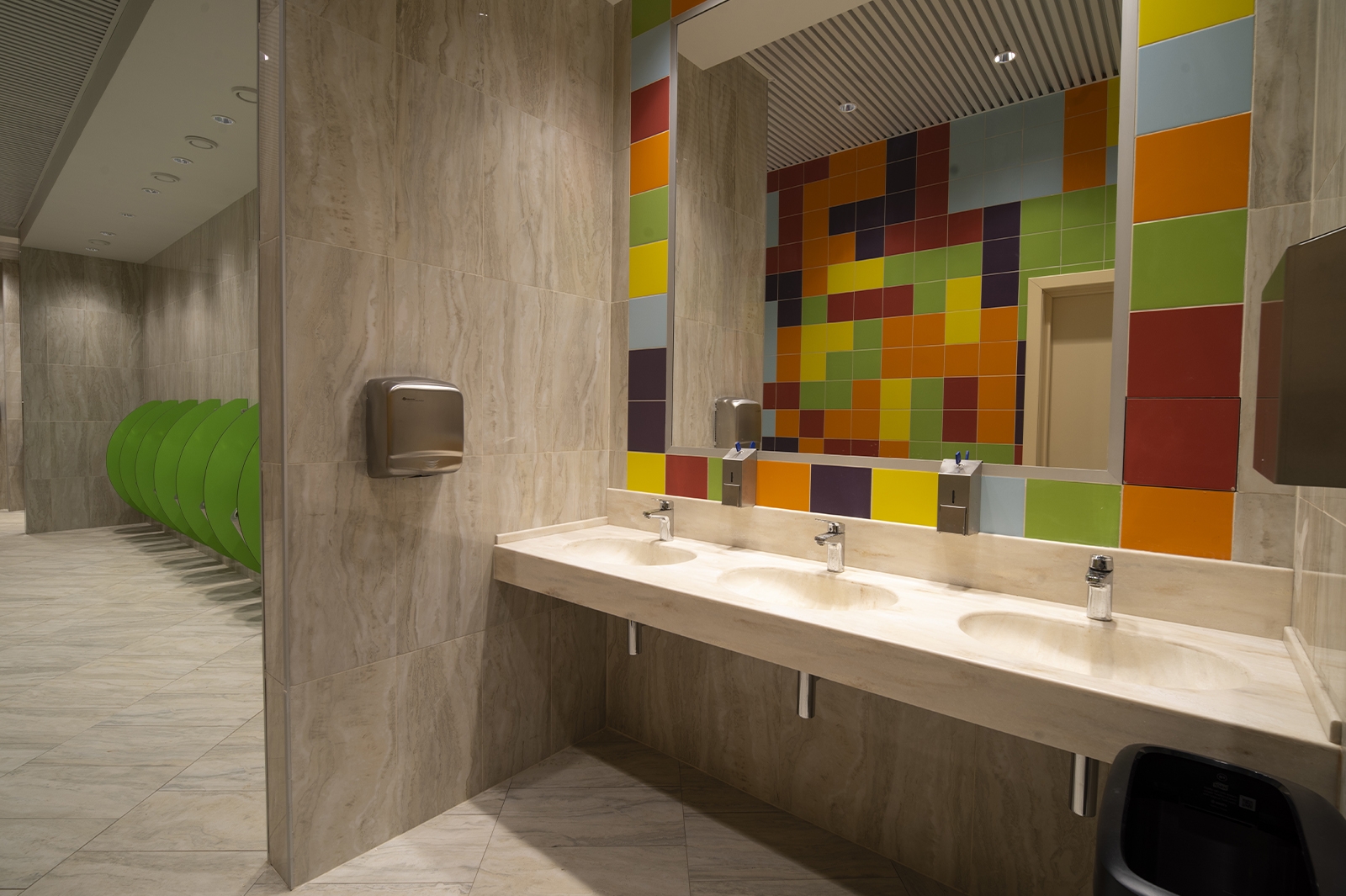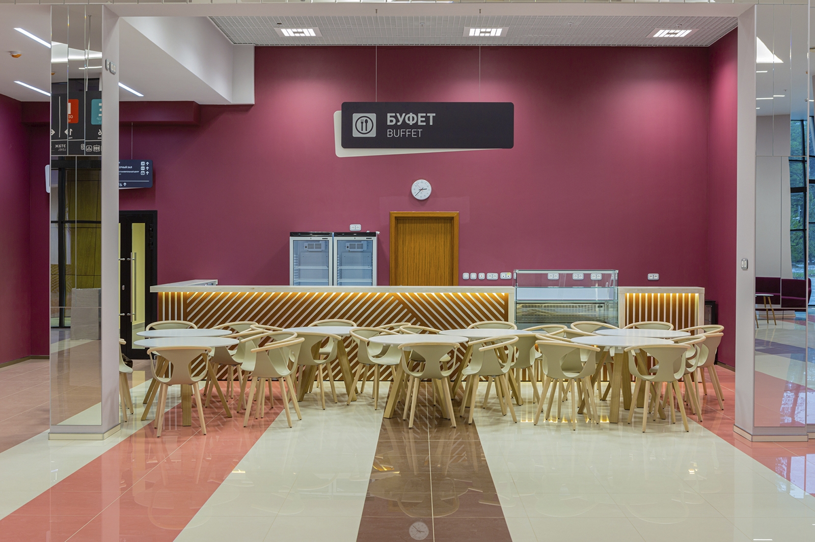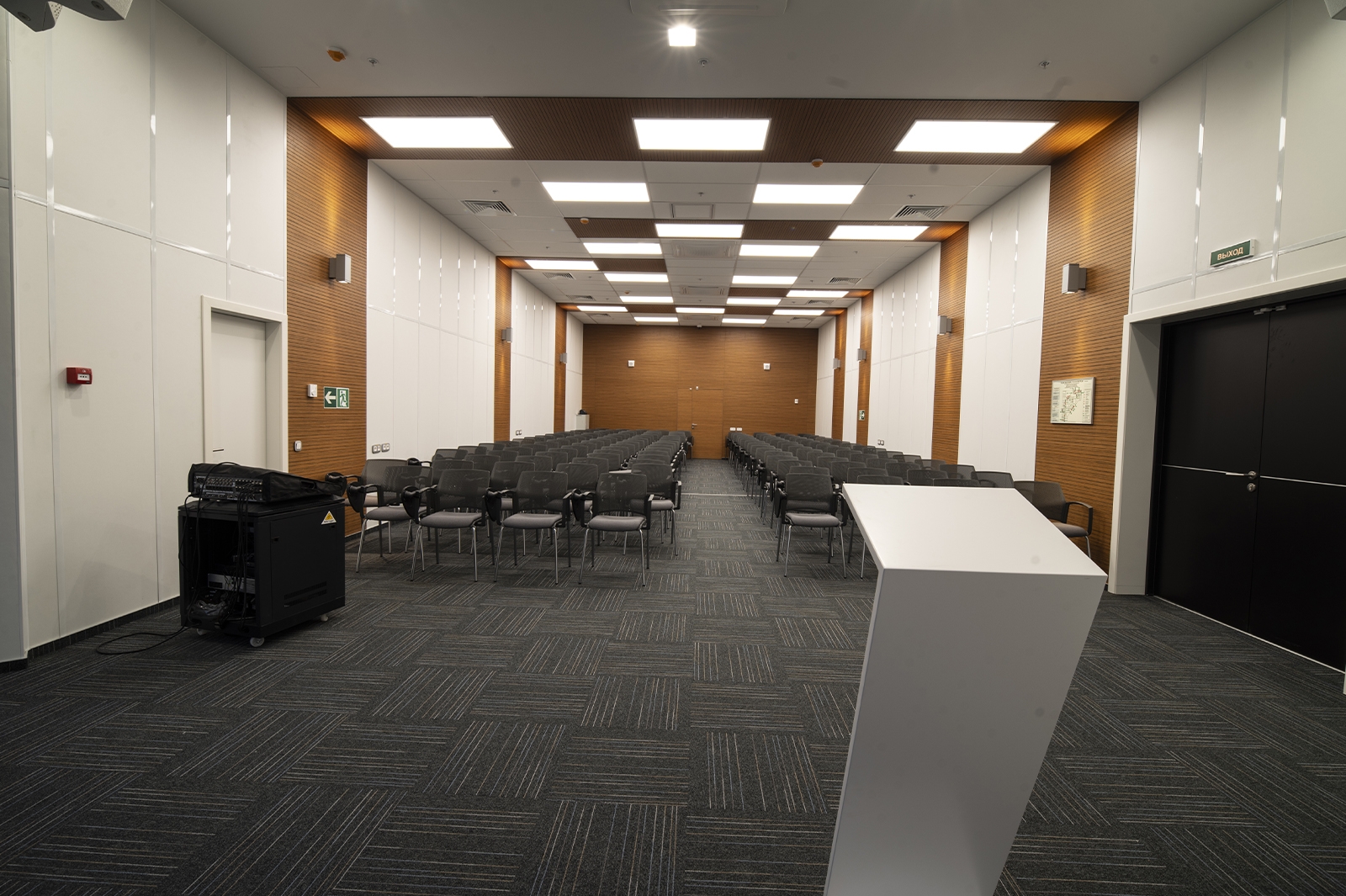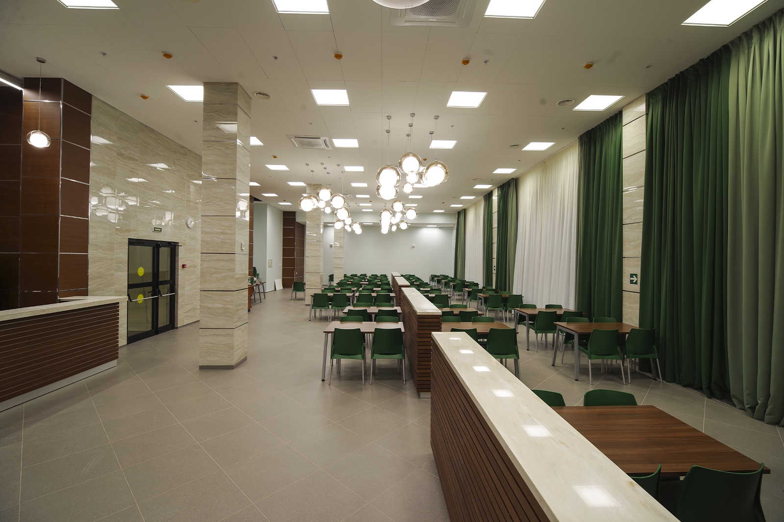 Что касается экстерьера комплекса, то здесь оборудованы медиафасады с интегрированной подсветкой площадью более 1 тыс. кв. метров. Зрителей встречают эффектные входные группы с цветными световыми полосами.