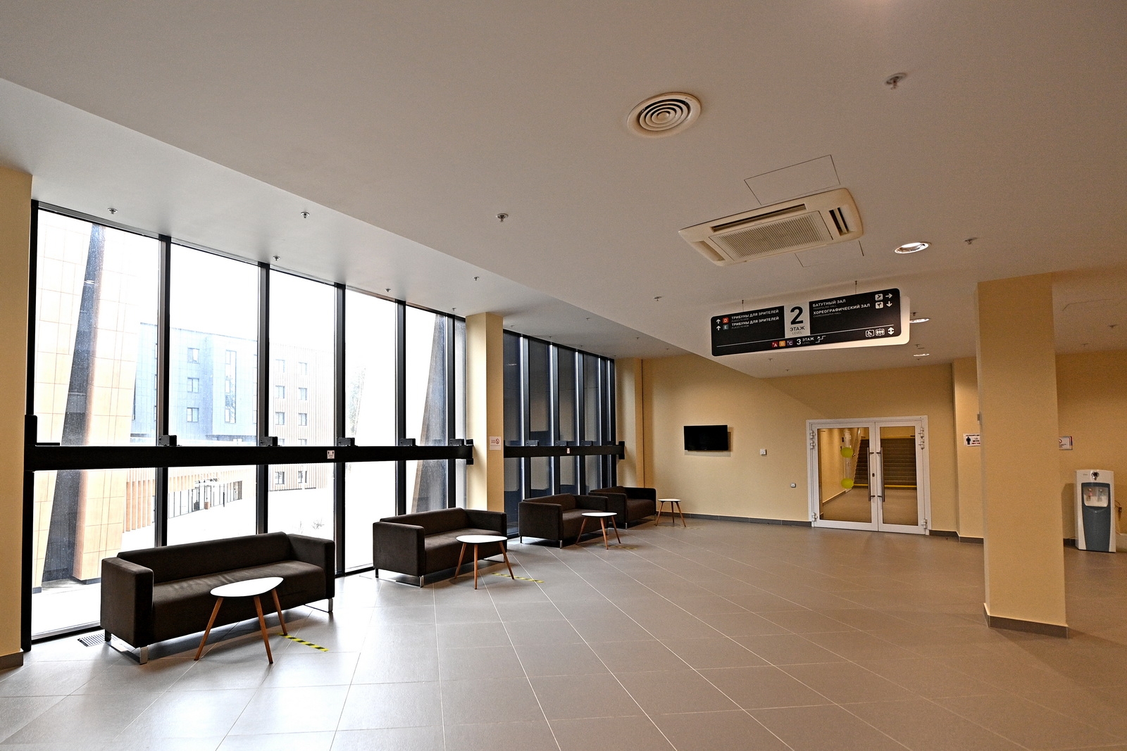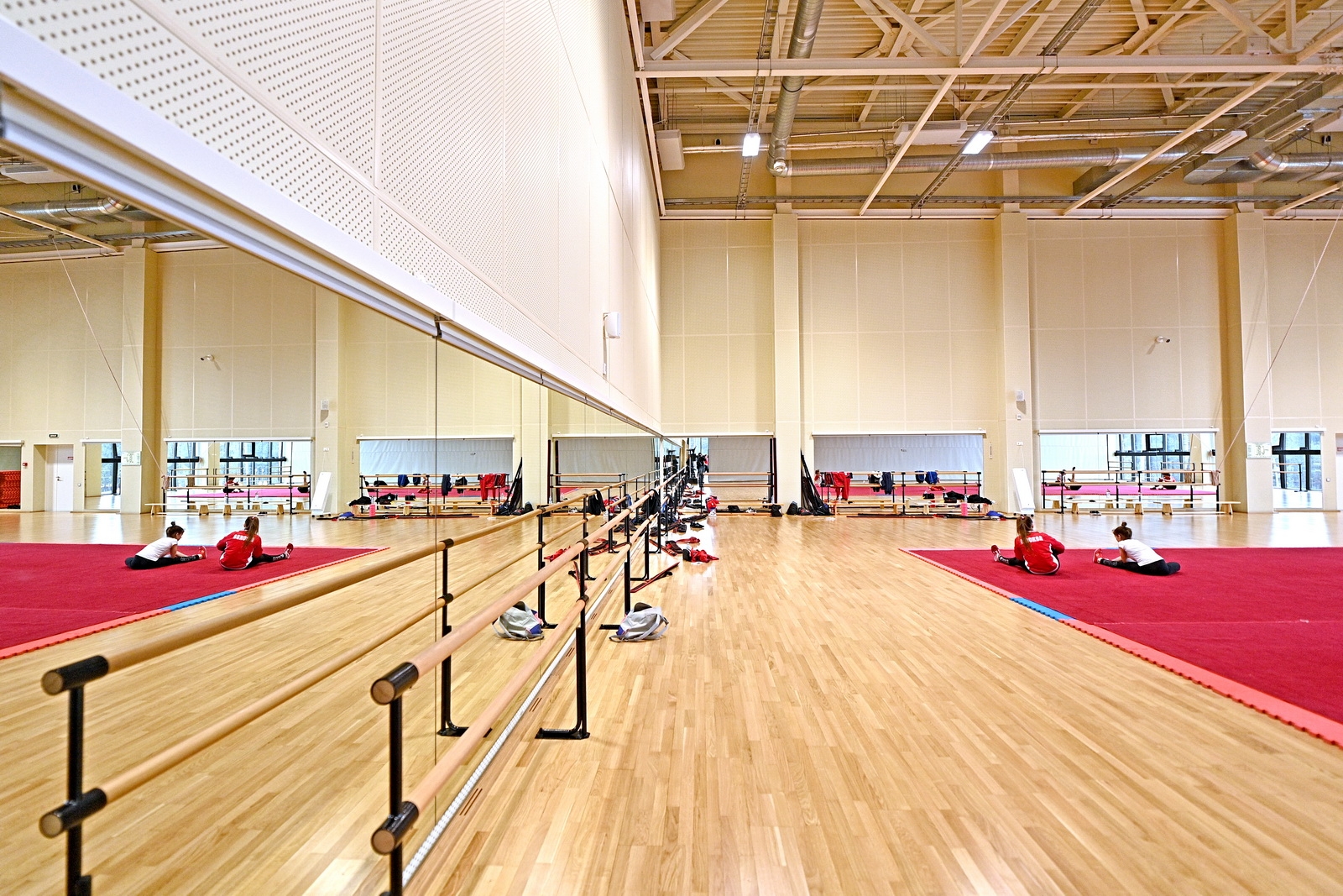 Также обустроен зал хореографии 30 х 24 метра и высотой 7 метров для проведения тренировок по танцевальным видам спорта. В нем установлены хореографические станки и лонжи (учебно-тренировочные тренажеры) с электроприводом для отработки сложных акробатических элементов.