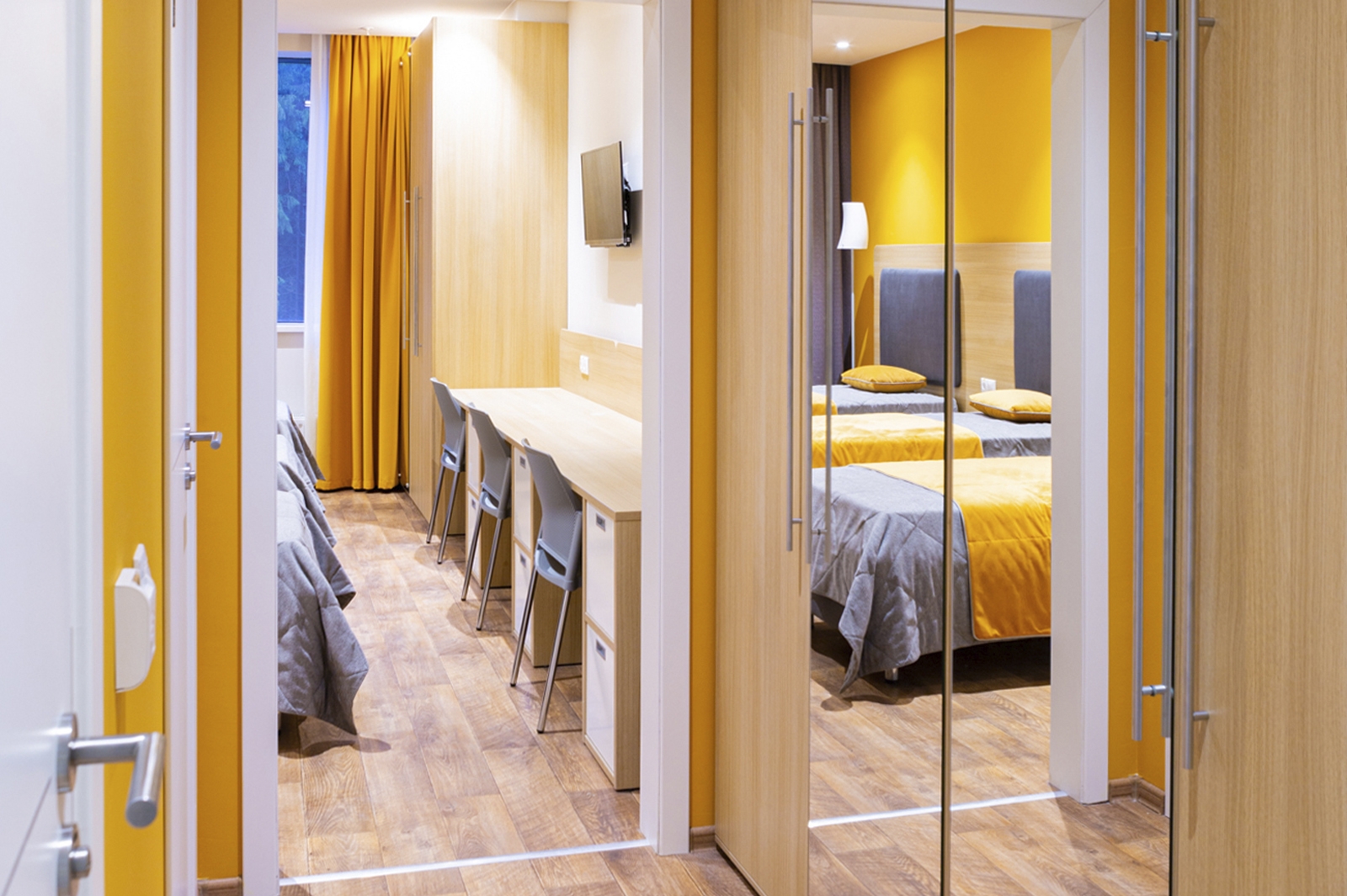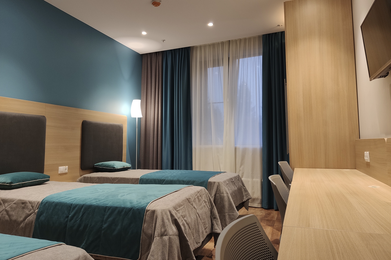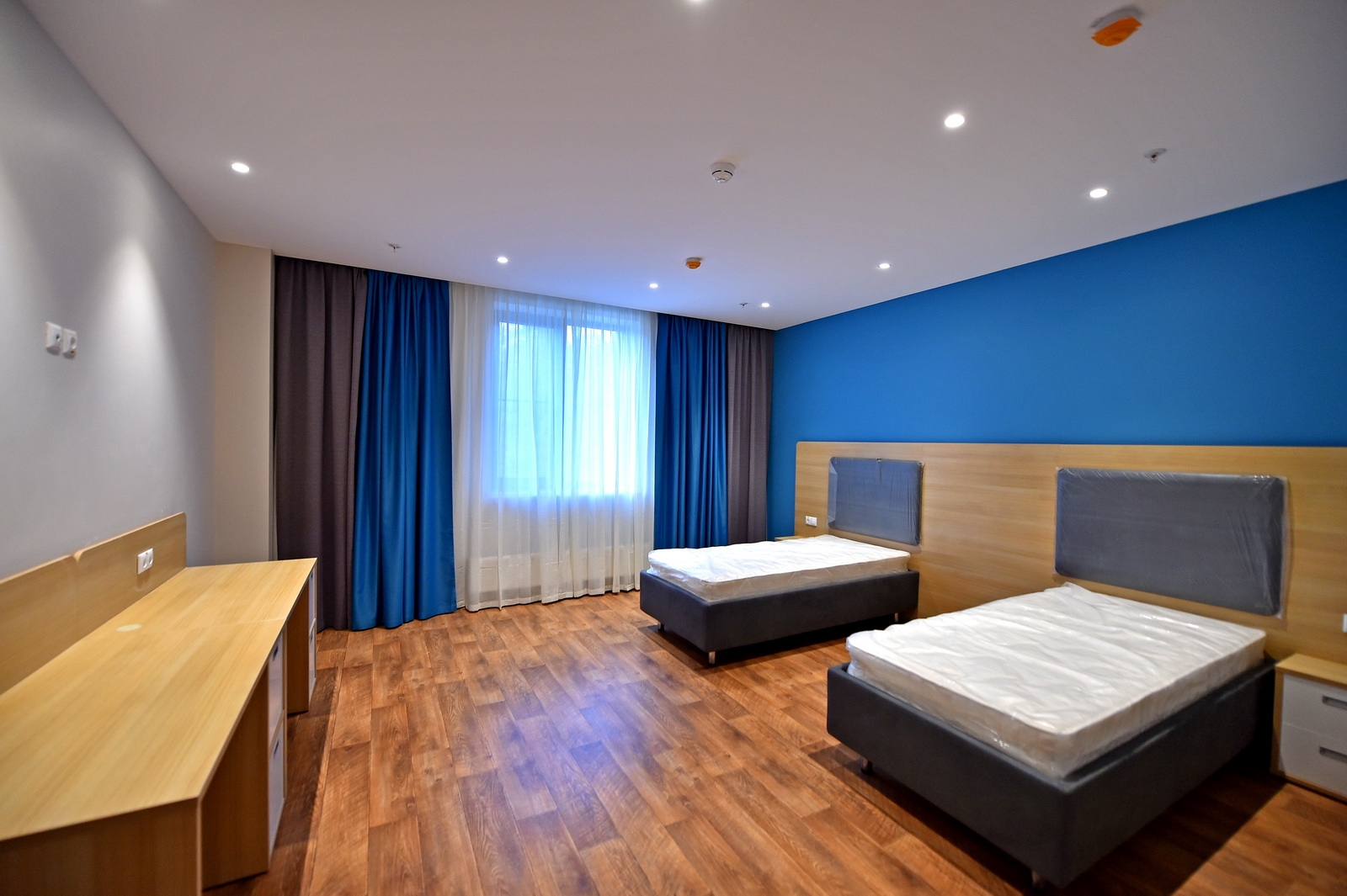 Главная идея концепции комплекса «Жаворонки» – возможность обеспечить режим непрерывных тренировок с длительным пребыванием спортсменов на территории. Поэтому здесь есть общежития для спортсменов, рассчитанные на 300 человек, со столовой, конференц-залом и залом теоретических занятий. Корпуса общежития и спорткомплекс соединяет теплый переход.