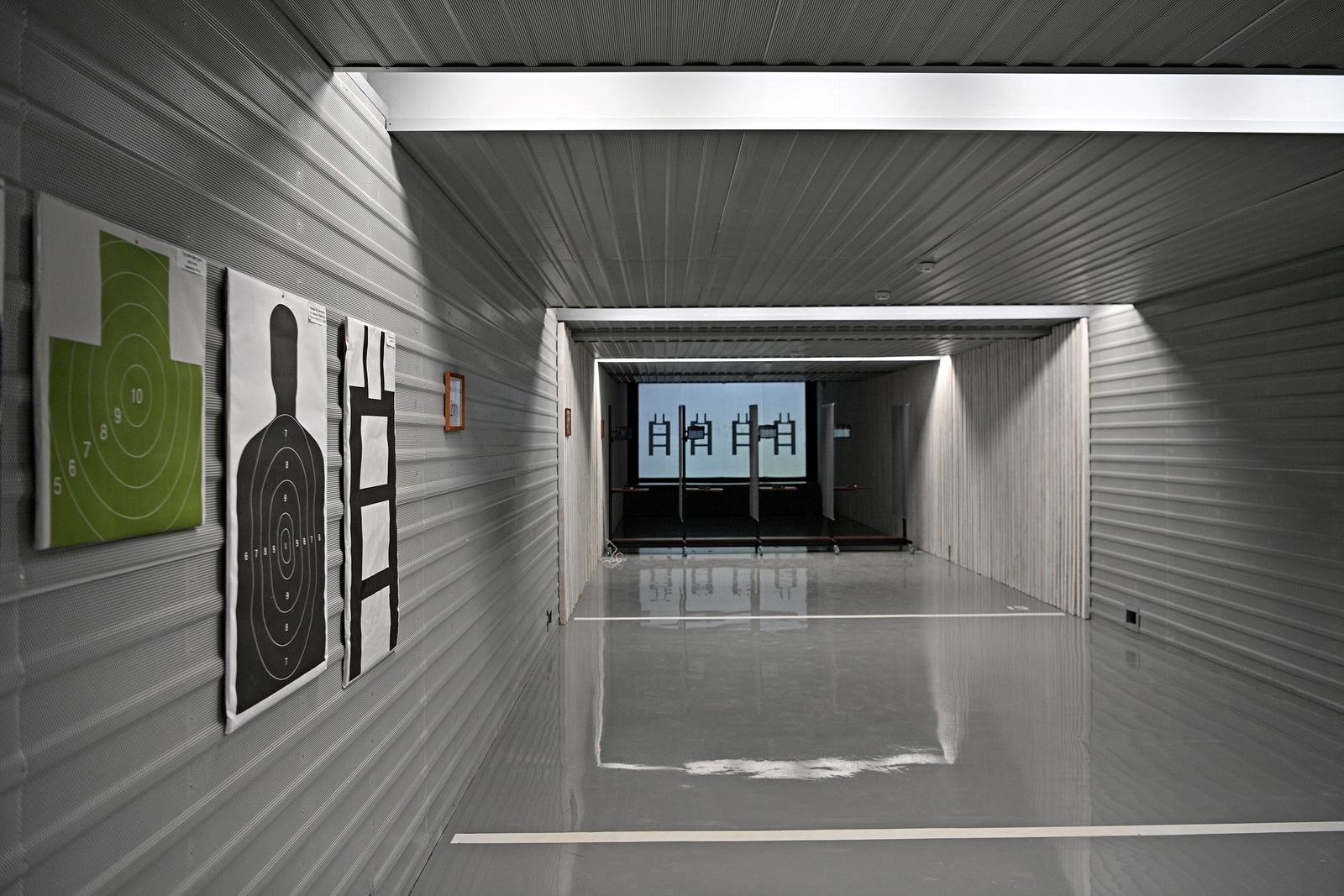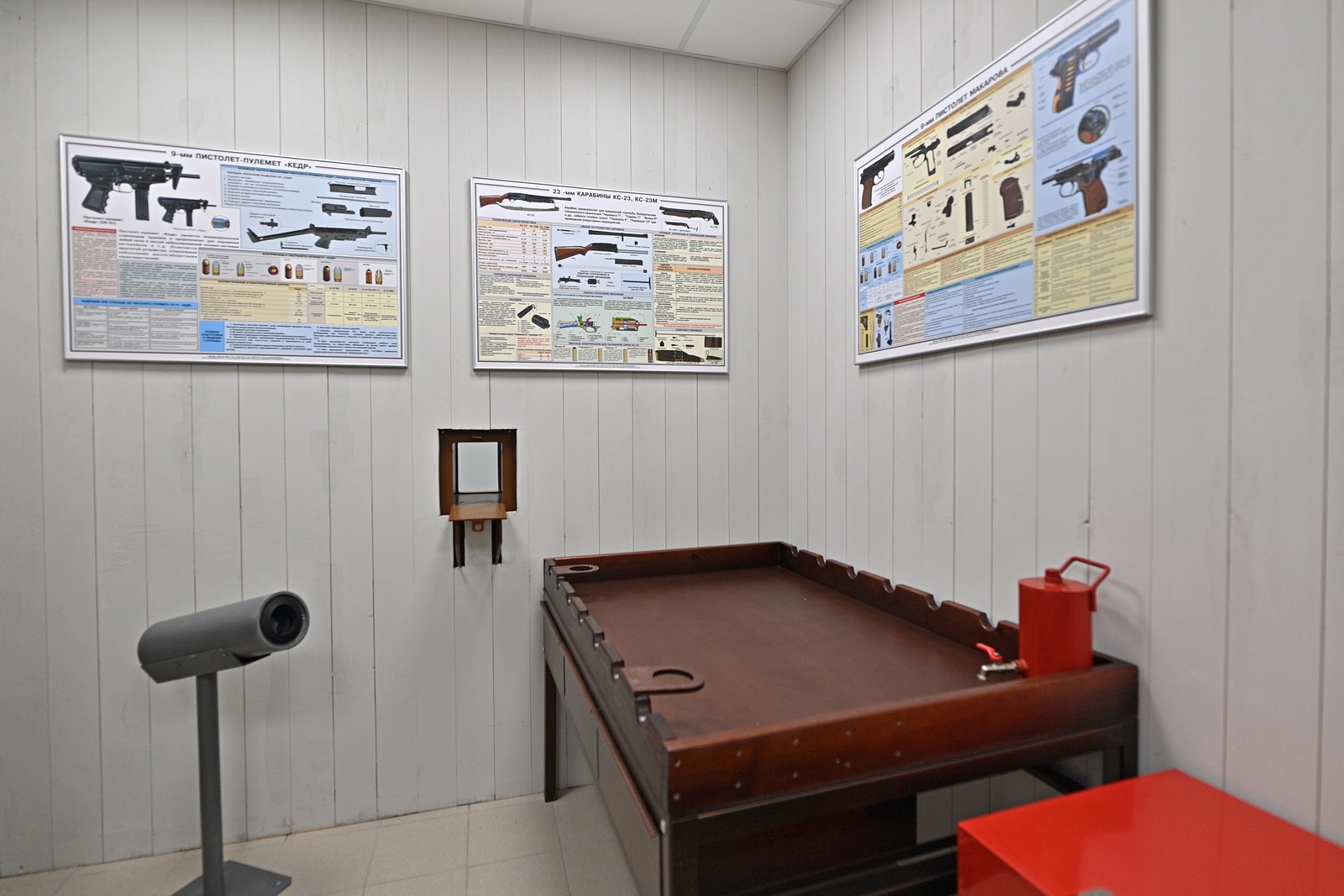 Площадь нового трехэтажного здания полиции с подземным уровнем составляет 5,4 тыс. кв. метров. Здесь есть все для комфортной службы сотрудников. На минус первом этаже разместили 25-метровый стрелковый тир на четыре места, зону для чистки оружия и выдачи боеприпасов, помещение для инструктажа работников, кладовую для вещественных доказательств, а также спортивный зал с бойцовским ковром.