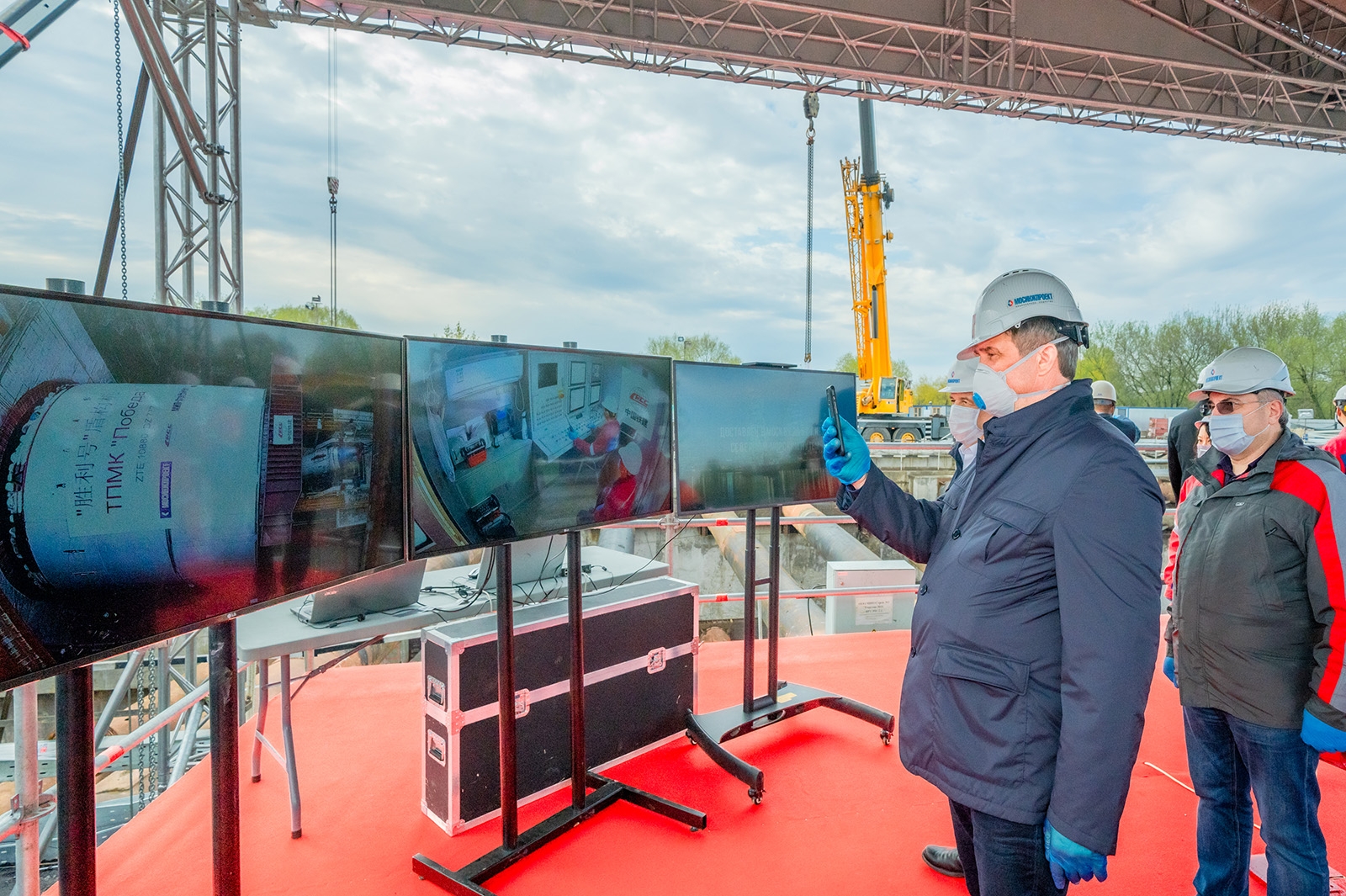 Мэр Москвы Сергей Собянин 12 мая проверил ход строительства станции метро «Кленовый бульвар» БКЛ и проходку двухпутного перегонного тоннеля.