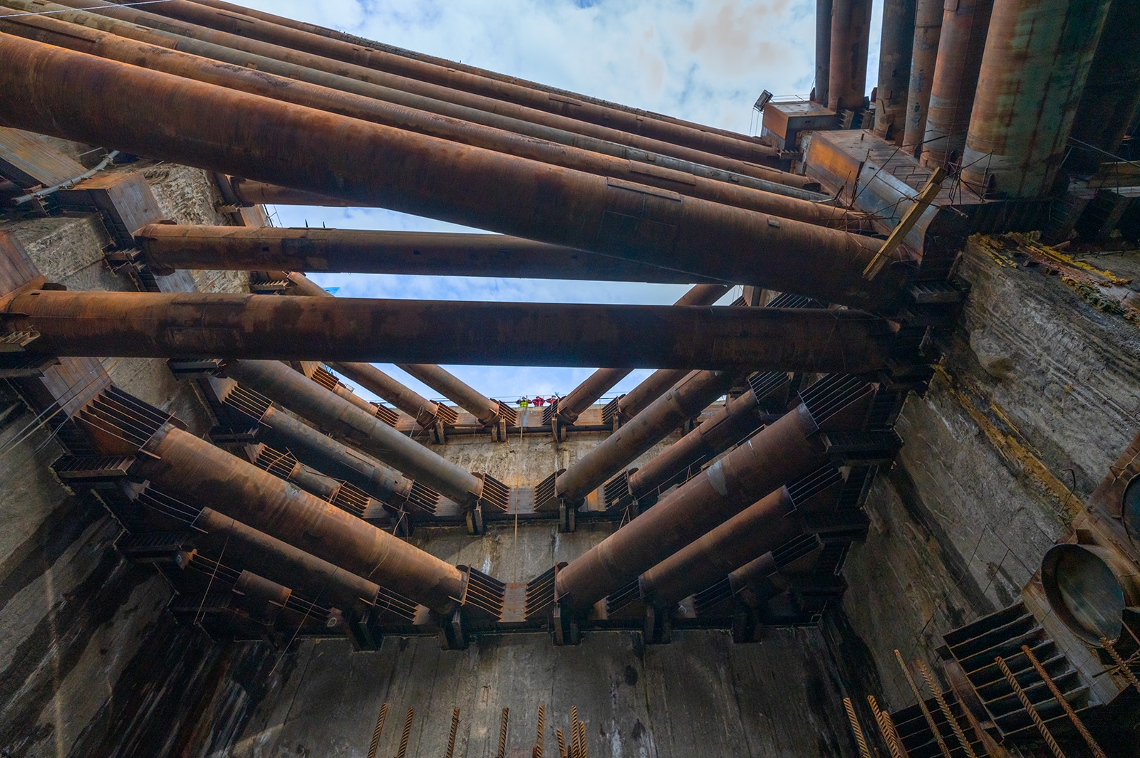 При строительстве станции «Нижегородская» применили технология top-down, когда подземная часть возводится «сверху-вниз» от уровня земной поверхности. Сначала бетонируют перекрытия и сваи-колонны, а потом работы идут вглубь с возможностью параллельного строительства сооружений на поверхности. Это позволяет работать в условиях плотной застройки и экономит время.