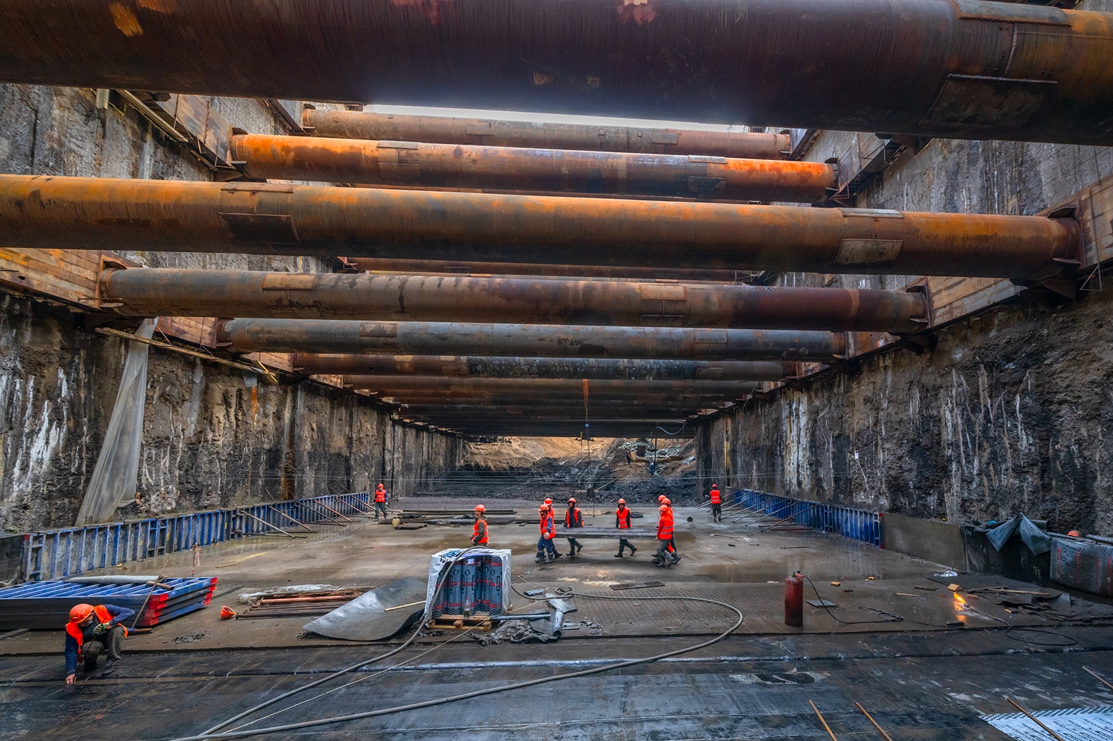 Щит-гигант «Победа» начал прокладывать двухпутный тоннель от станции метро Большой кольцевой линии (БКЛ) «Кленовый бульвар» в сторону «Каширской». Строители в это время продолжают готовить котлован для сооружения платформенной части новой станции. Как строят метро в новых реалиях? Рассказываем.