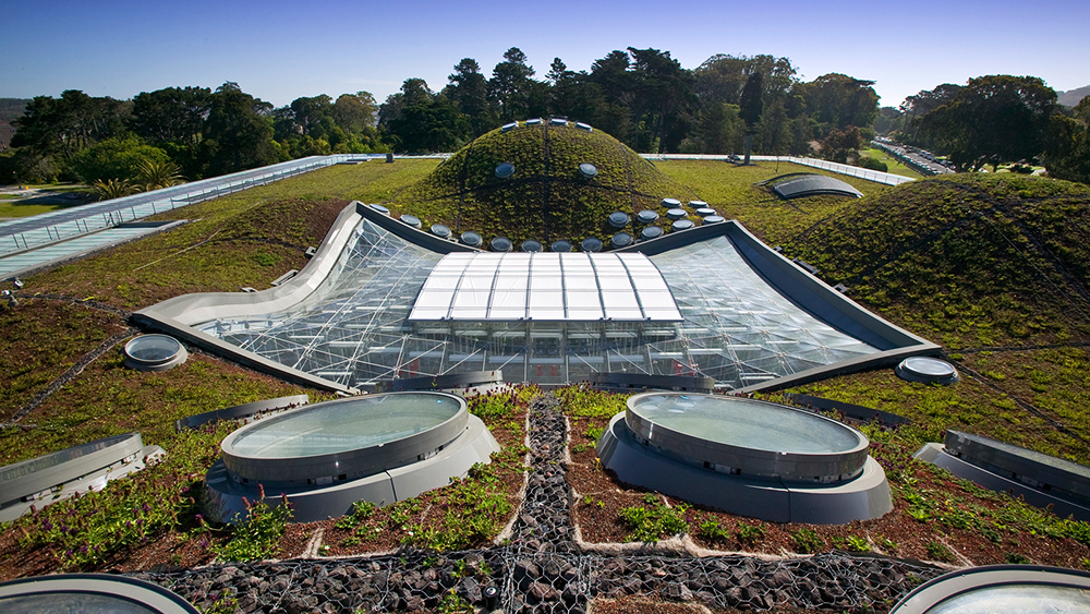 Это, пожалуй, самая большая зеленая кровля в мире на здании, спроектированном и построенном с применением самых передовых инженерных технологий. Здание Калифорнийской Академии наук получило множество архитектурных наград за инженерные решения и платиновый сертификат «экологической устойчивости» LEED.