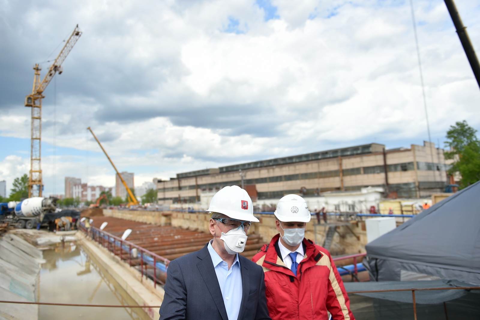 Мэр Москвы Сергей Собянин 25 мая проверил работы на стройплощадке будущей станции салатовой ветки метро – «Лианозово».