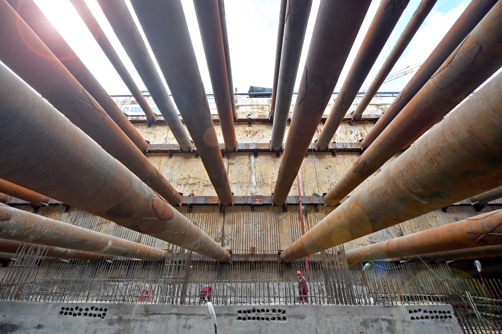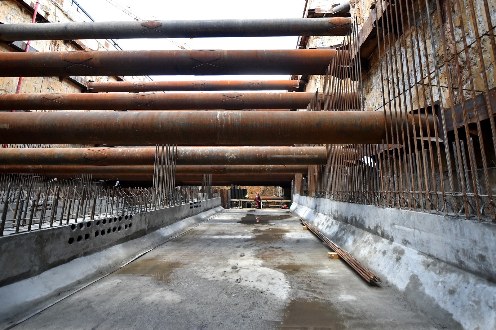Сейчас на стройплощадке установлены ограждающие конструкции и находится в разработке котлован. Также ведутся работы по укладке монолитного железобетона. Строительная готовность составляет 27%. Подрядчиком выступает АО «Мосметрострой».