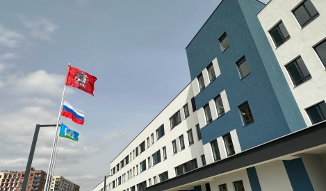 Новое здание школы откроется к 1 сентября в районе Южное Медведково на северо-востоке столицы. Учебный корпус прямоугольной формы, возведенный в составе жилого комплекса, гармонично вписан в окружающую застройку.