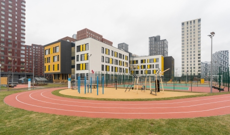 С 2011 года в столице построили 599 зданий школ и детских садов. Теперь образовательные учреждения рядом с домом посещают 95% первоклассников. Один из таких новых и современных учебных корпусов получили юные жители района Ховрино на севере столицы.