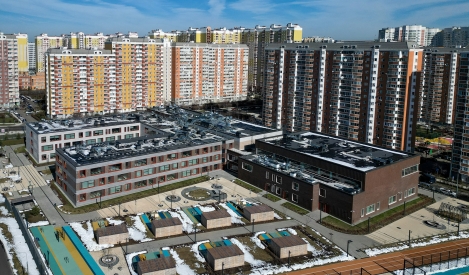 В поселке Коммунарка Новой Москвы идет строительство образовательного комплекса: в его состав войдут школа и детский сад.