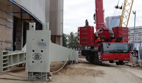 На Центральном стадионе «Динамо» им. Льва Яшина в Москве началась установка уникальных по прочности мегаколонн. Для того, чтобы сохранить западную историческую стену, рядом с ареной будет установлено восемь таких конструкций. Каждая из них весит около 27 тонн и может выдержать нагрузку до 3,5 тысячи тонн.