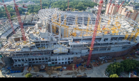 На Центральном стадионе «Динамо» им. Льва Яшина в Москве уже готова плита перекрытия подземного, первого и второго этажей спортивного концертно-развлекательного комплекса. Строители приступили к монтажу конструкций кровли.