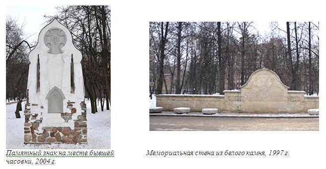В 1996 - 1997 годах было выполнено Историко-археологическое заключение и проведены работы по благоустройству с выделением мемориальной зоны в юго-западном углу парка и установкой памятных знаков и часовни.