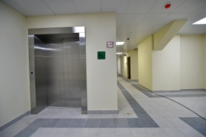 В каждой секции предусмотрена установка двух пассажирских лифтов - одного грузоподъемностью 1000 кг и одного грузоподъёмностью 630 кг, их оборудуют визуальными и тактильными средствами информации.