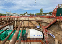 5 мая 2022 г. Строительство северного вестибюля станции «Окружная» Люблинско-Дмитровской линии метро. С. Собянин, А. Бочкарёв, Ю. Кравцов