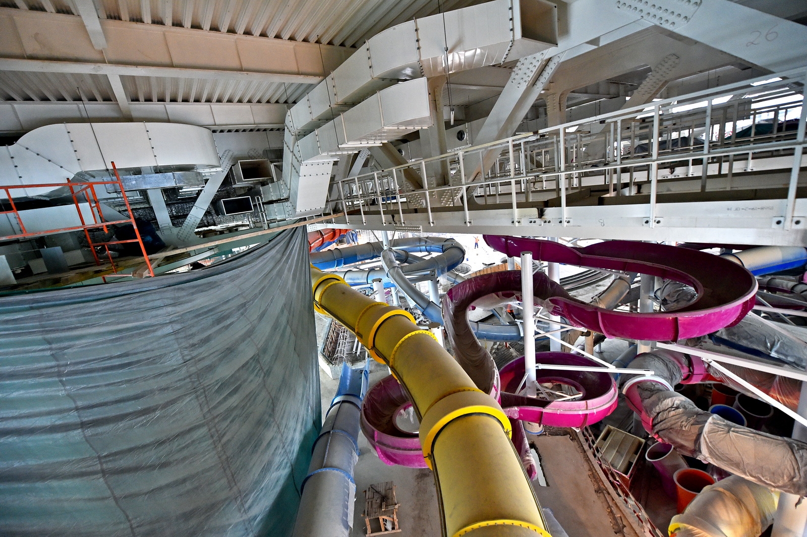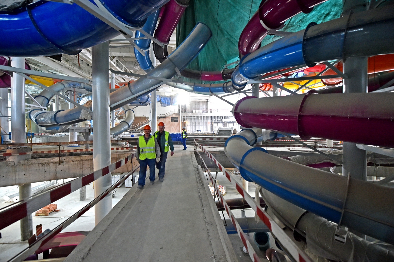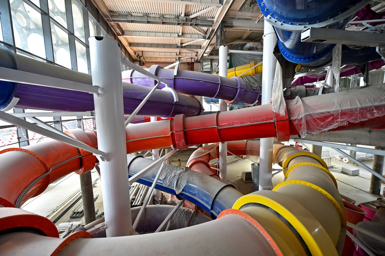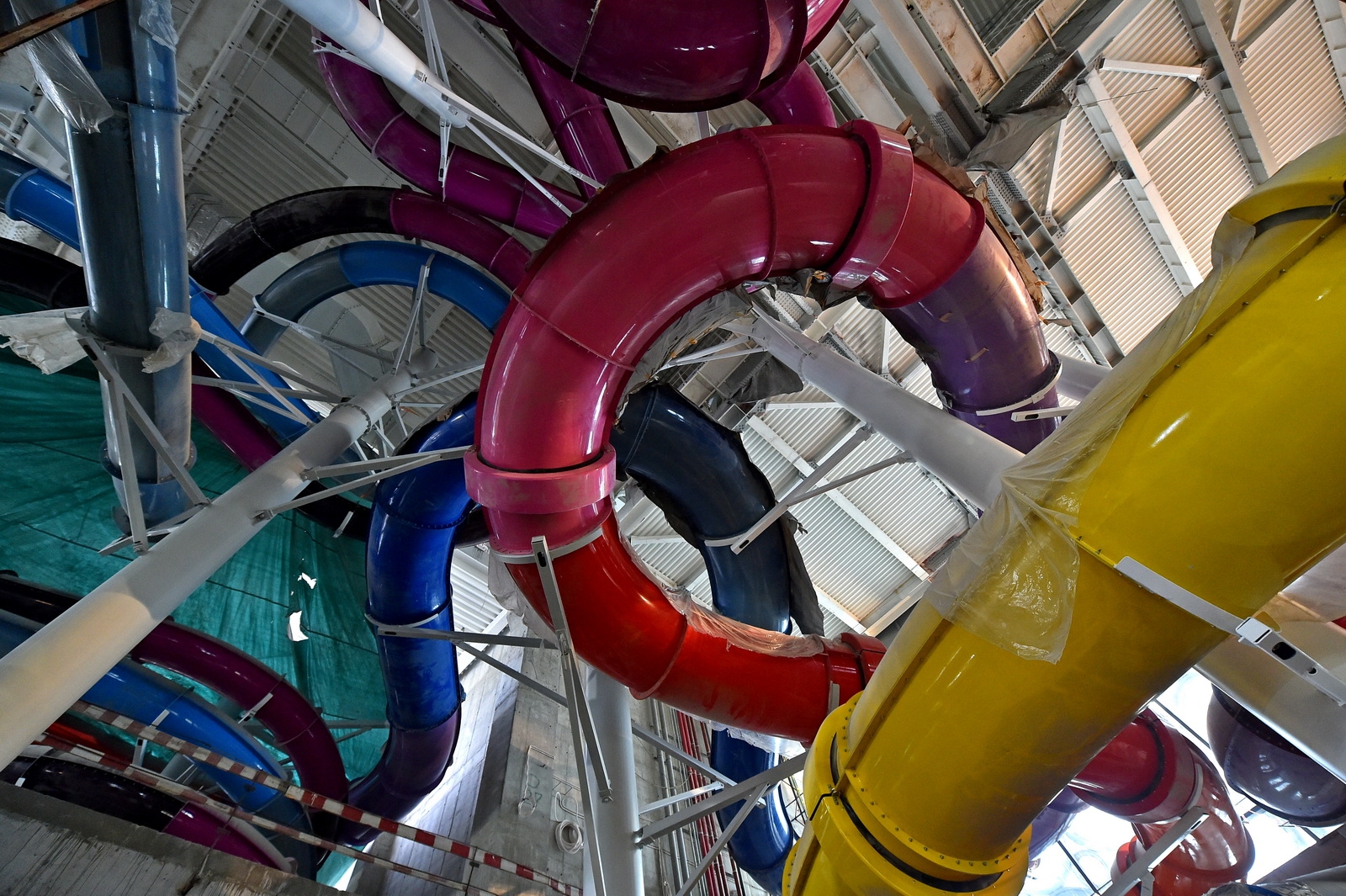 Водная труба (AquaTube Slide, четыре горки разной высоты и длины трассы) – для одиночного или парного спуска на надувных плотах с финишем в приемном лотке. Высота первой горки – 9,9 м, длина спуска – 138 м, высота двух других – 16,5 м, длина – 175 м. Высота четвертой горки – 16,8 м, длина – 135 м.