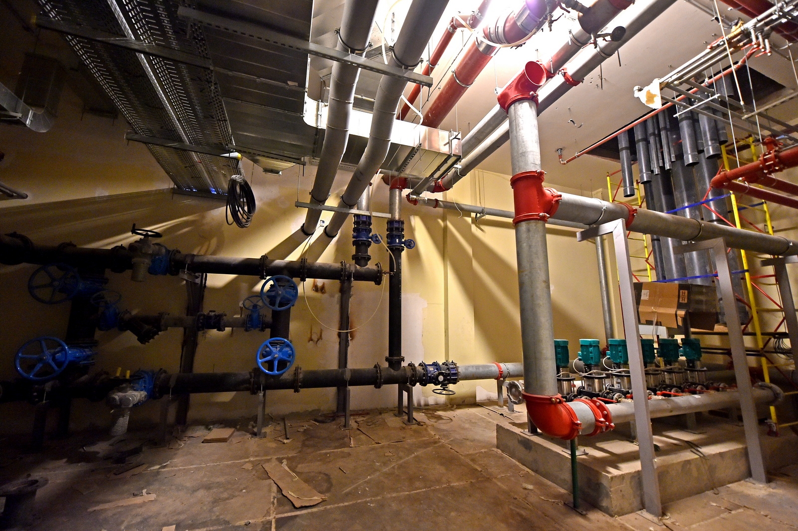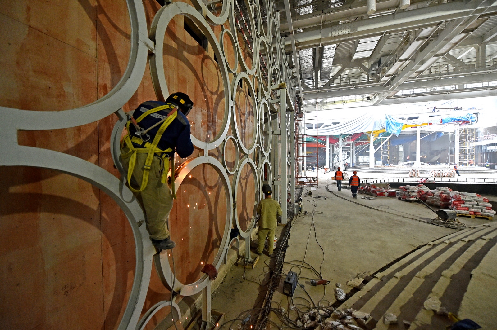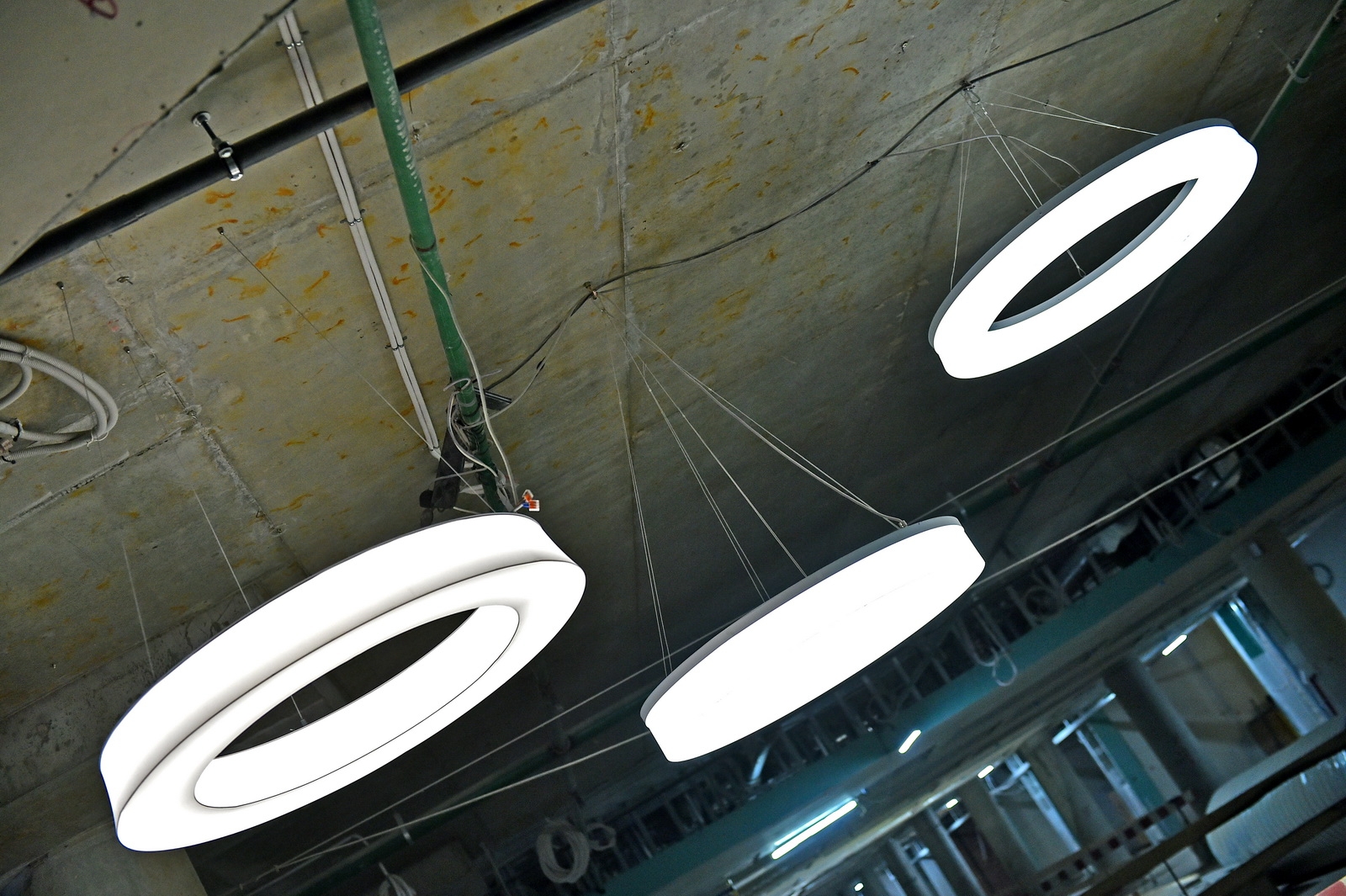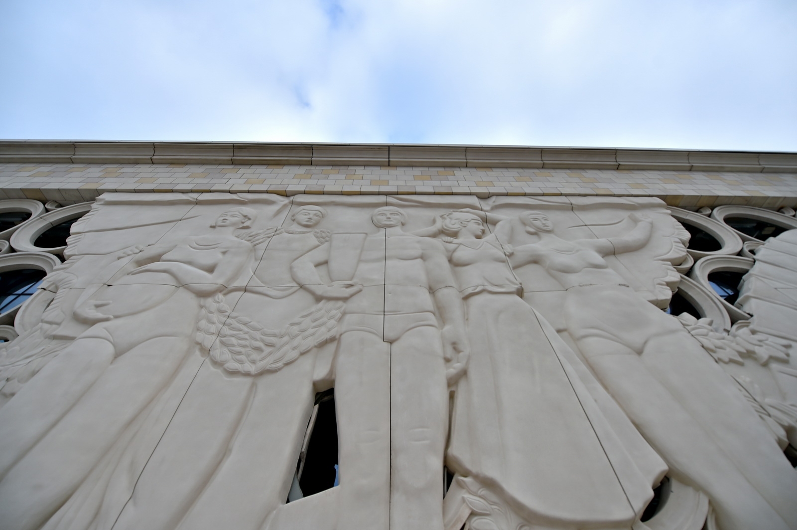 Уникальные барельефы, украшавшие фасад бассейна, сохранили и сделали частью интерьера. На здание повесили копии из фибробетона. Появились и олимпийские кольца – как отсылка к Олимпиаде-80, на которой советская сборная в стенах старого бассейна завоевала золотые медали. Кроме того, воссоздана и аутентичная колоннада.