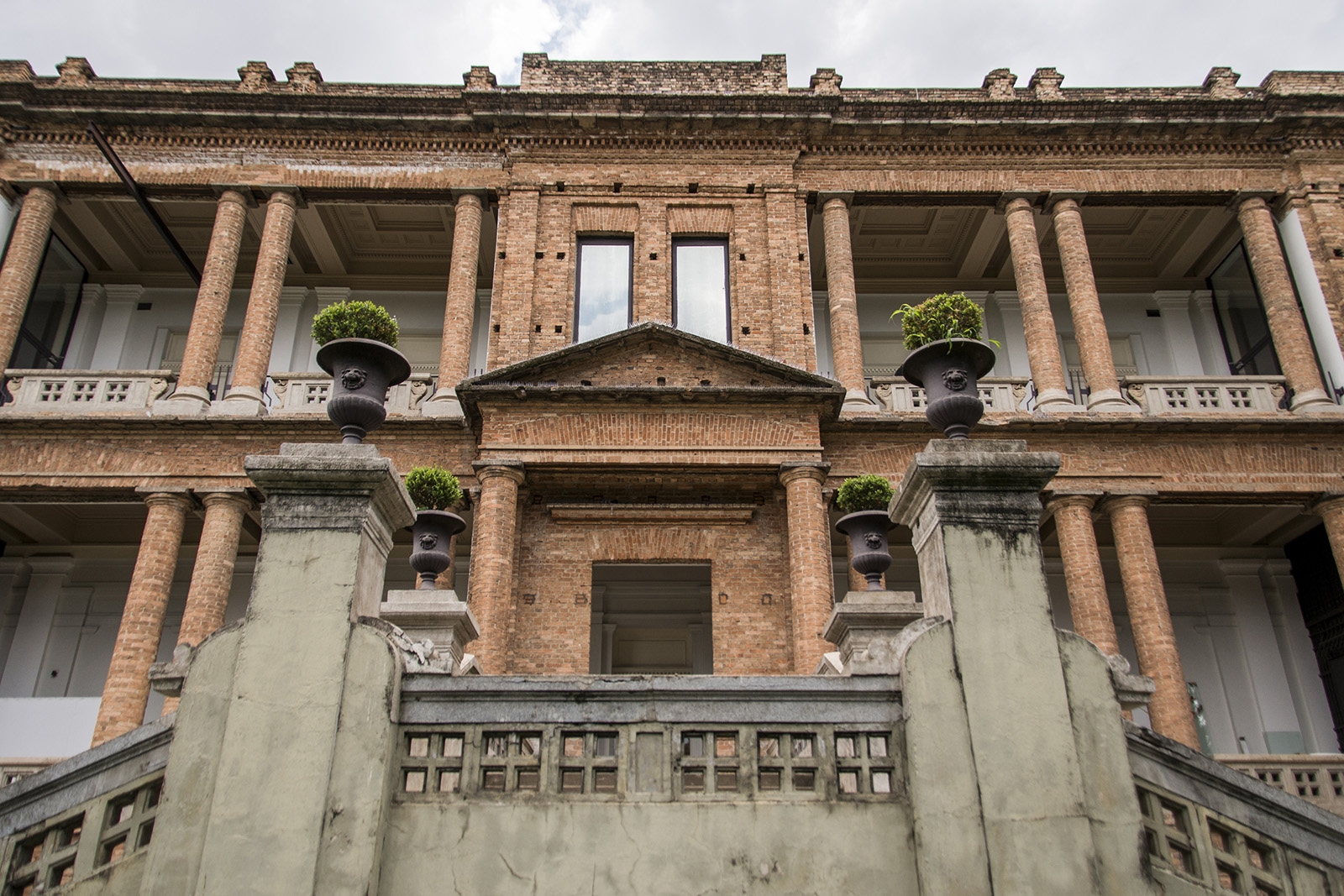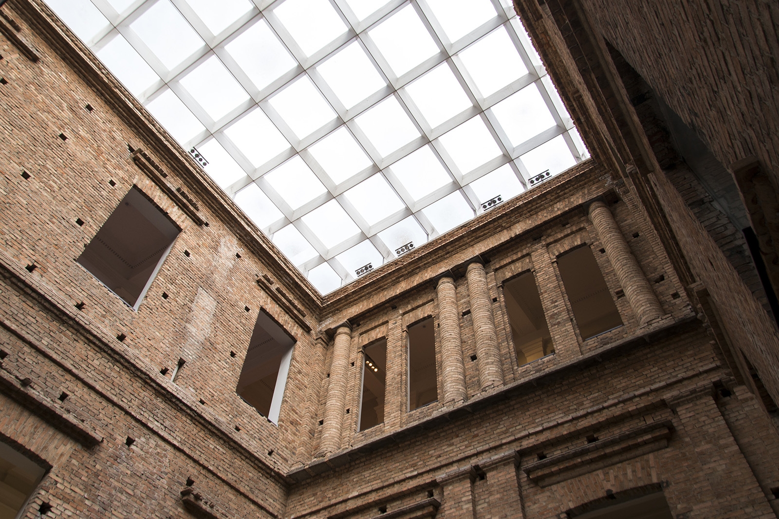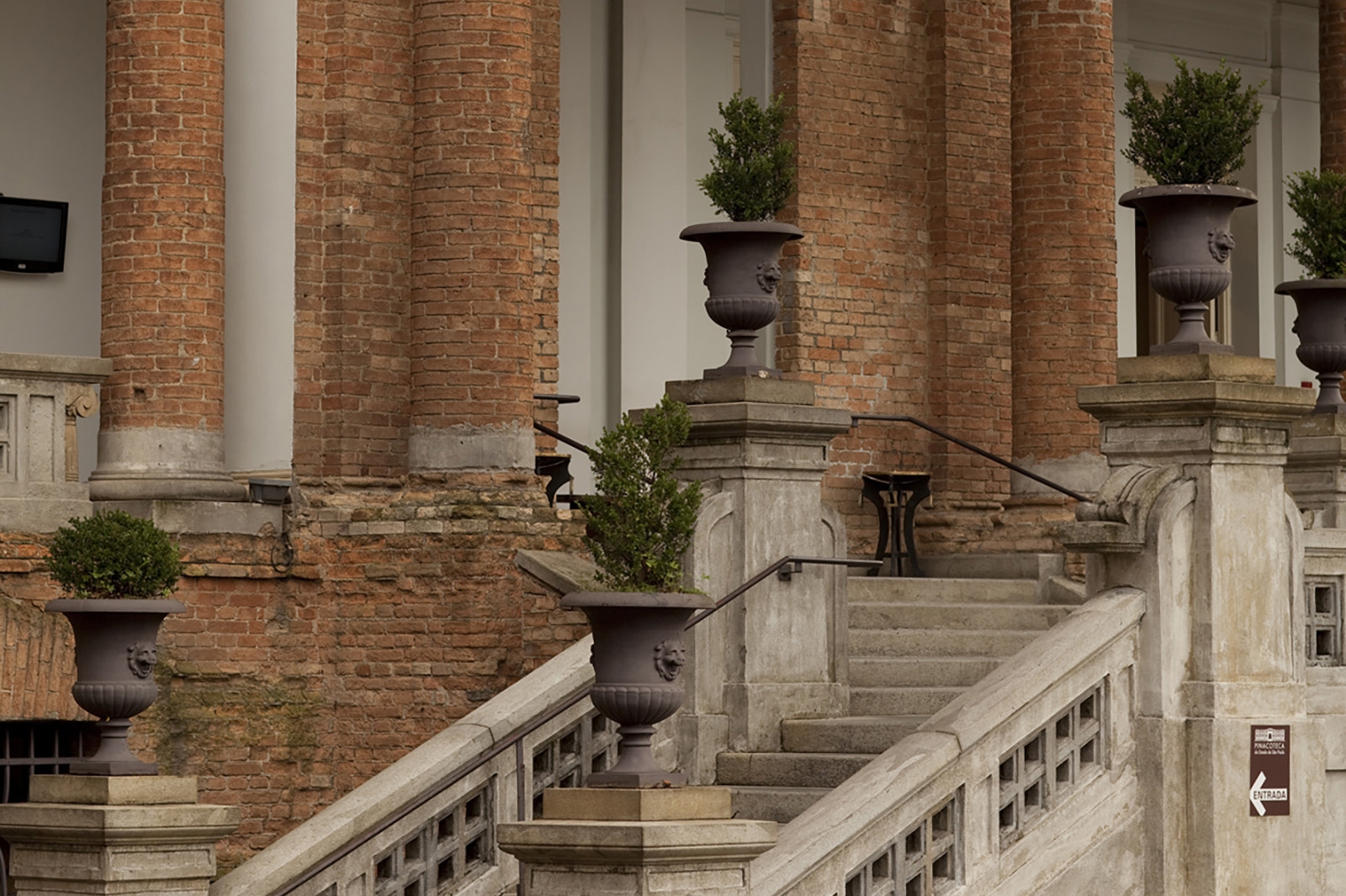 Благодаря Пауло постройка полностью избавилась от штукатурки и отделки, а также старых перекрытий: остались лишь «обнаженные» кирпичные стены. Главный вход в пинакотеку архитектор решил перенести на боковой фасад, между внутренними двориками здания на разной высоте появились мостики из металла, а крышу остеклили, что защитило пространство от неожиданное смены погоды.