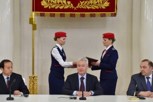 Подписание соглашения о сотрудничестве между метрополитенами Москвы и Пекина.С.Собянин, М.Хуснуллин, Д.Пегов, Чен Ксилин