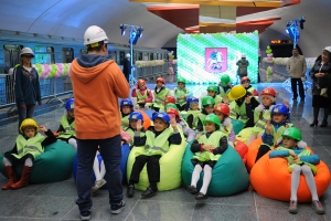 Открытый урок для 2Б класса школы 1359 на станции «Лермонтовский проспект» Таганско-Краснопресненской линии. С. Собянин, М. Хуснуллин, А. Бочкарев, И. Беседин